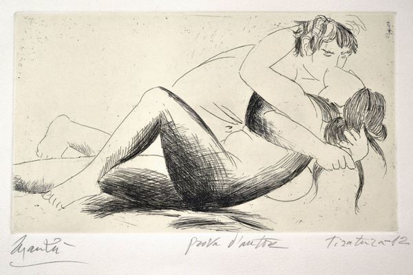 Firmata in basso a sinistra "Manzù" al centro "Prova d'autore" a destra "Tiratura 12".