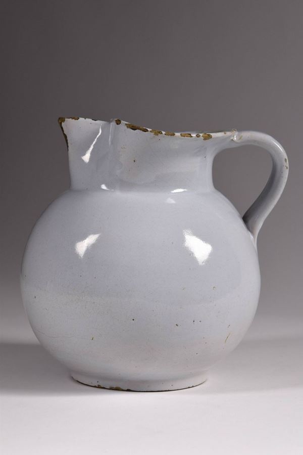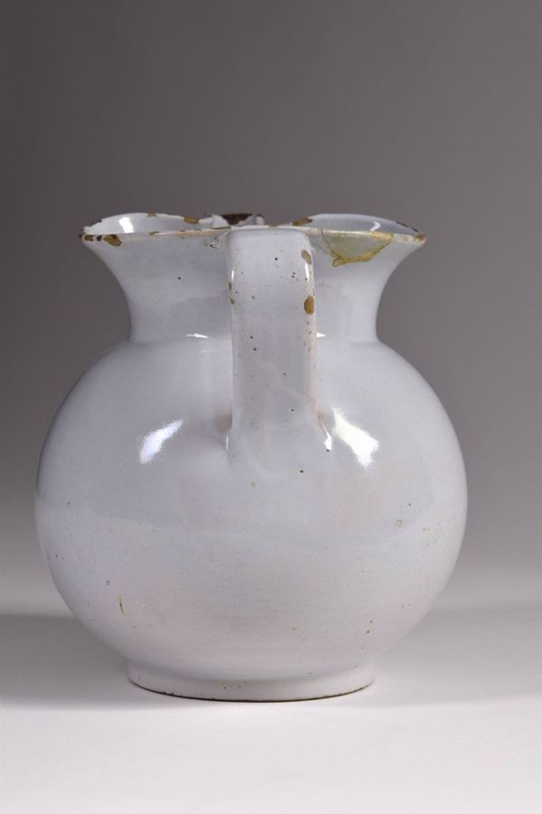 Boccale in maiolica monocroma a bocca trilobata.