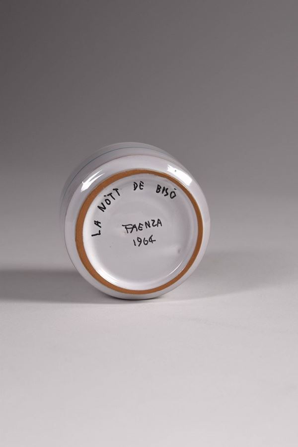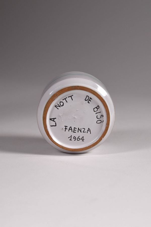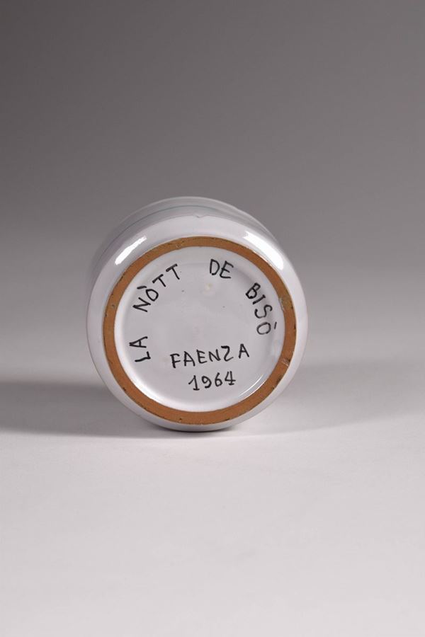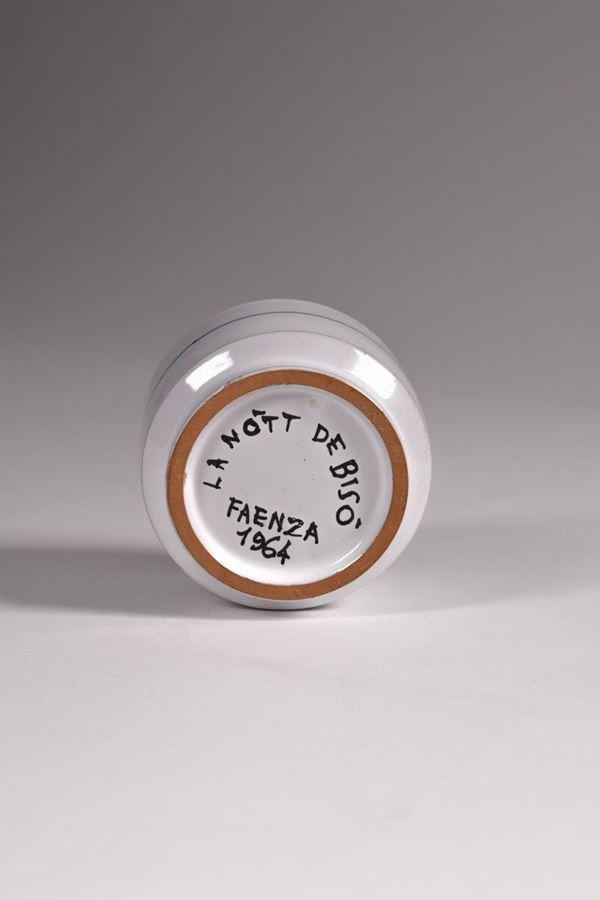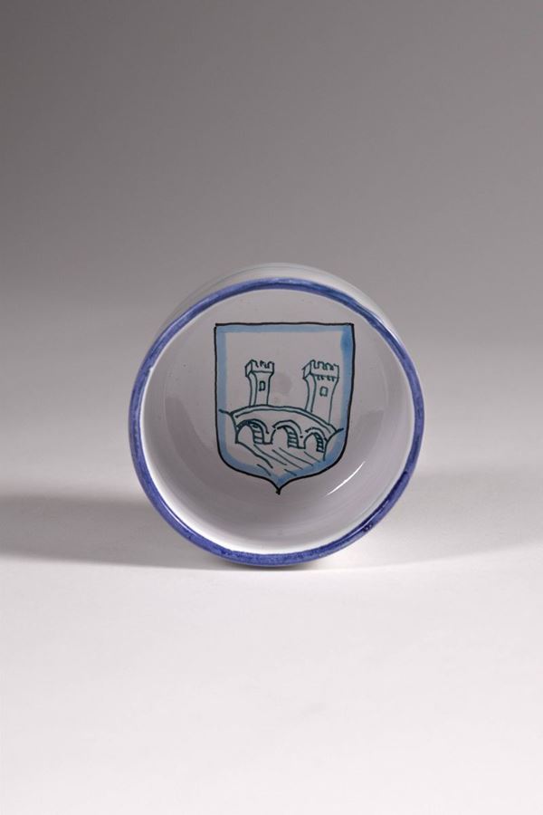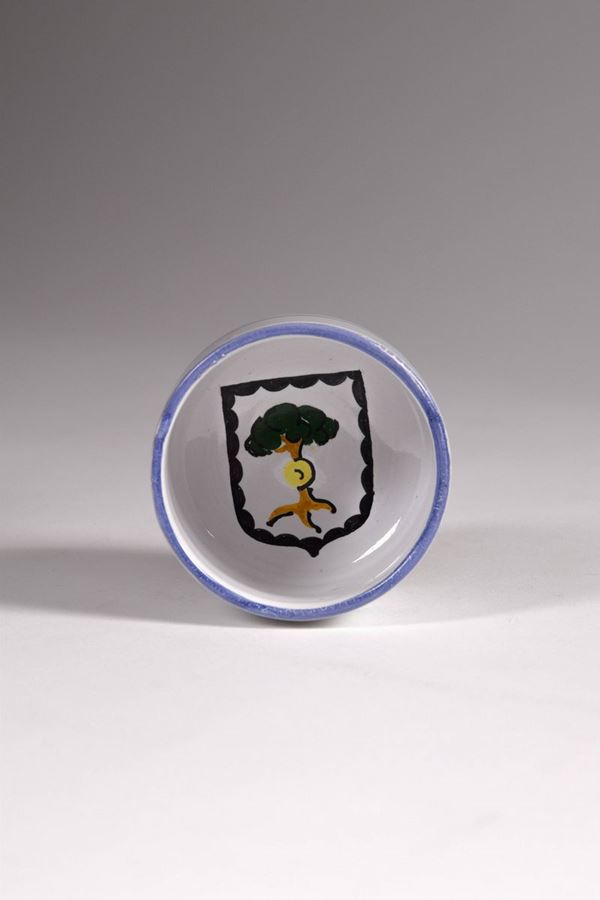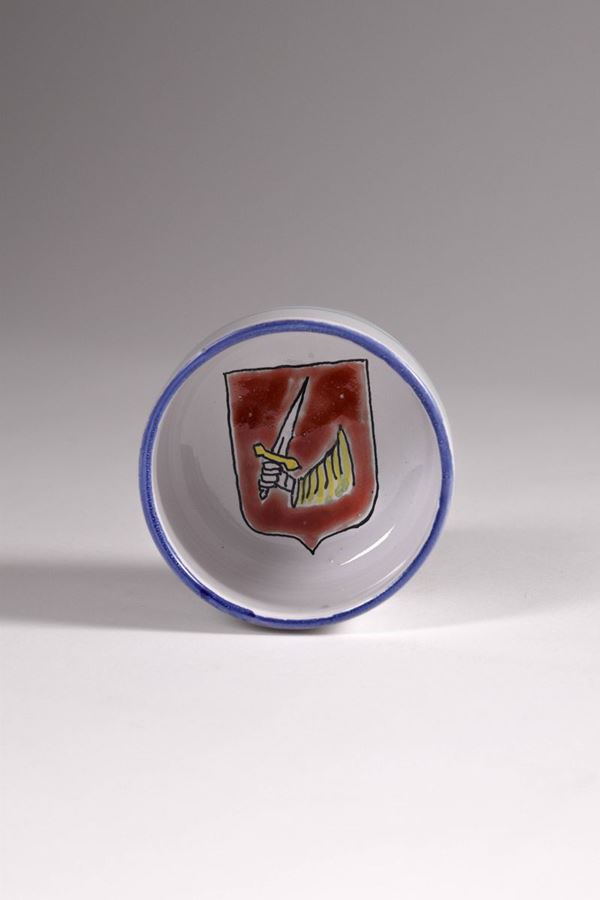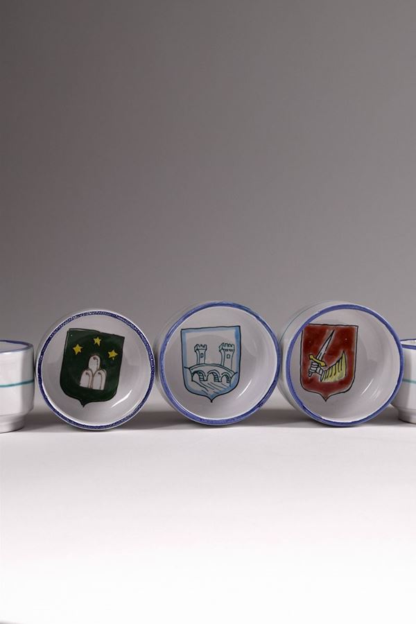 Serie completa dei gotti in ceramica policroma dipinta della prima edizione del Palio del Niballo di Faenza, eseguita da Goffredo Gaeta.