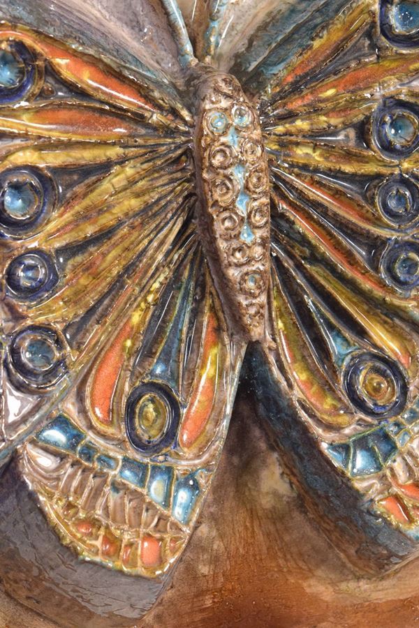 Altorilievo in ceramica policroma raffigurante farfalla.