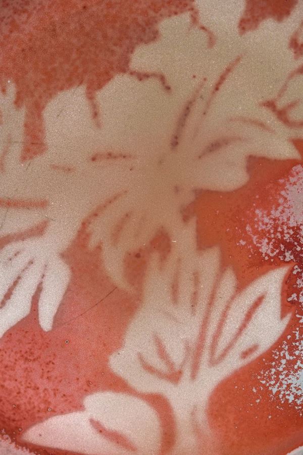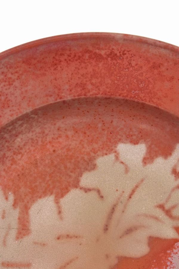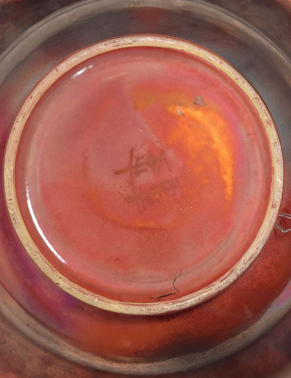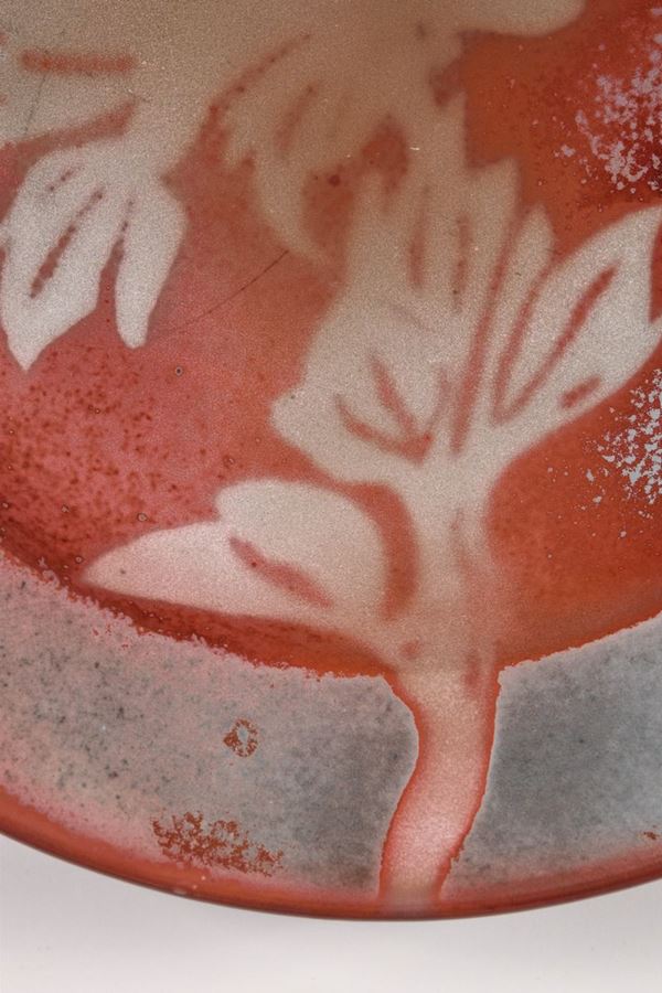 Grande piatto in ceramica policroma e riflessata con fondo decorato con rose dipinte, tesa monocroma color antracite.