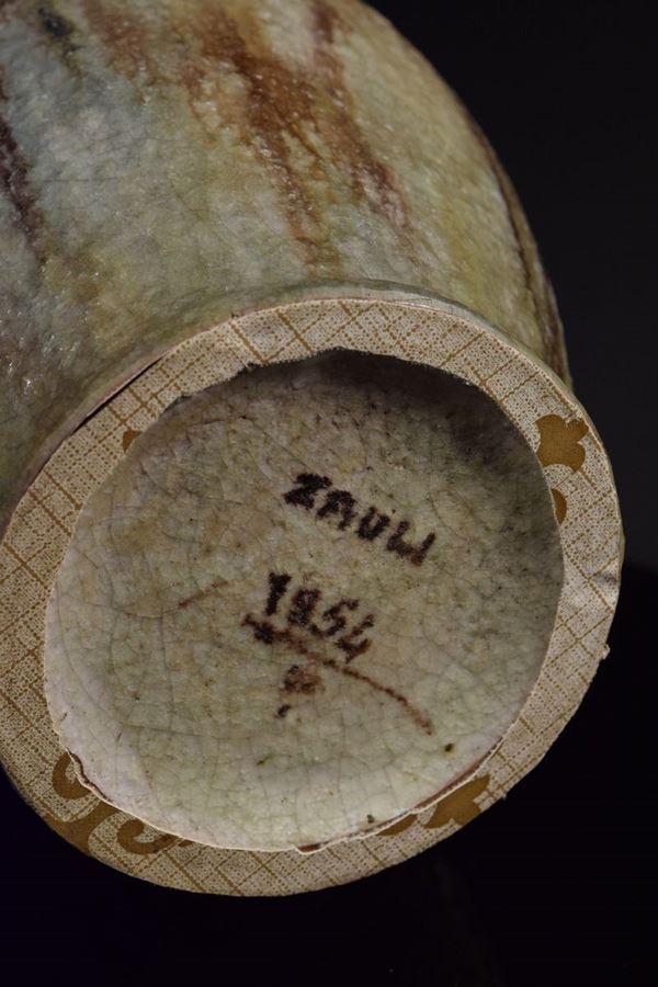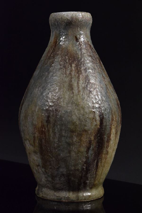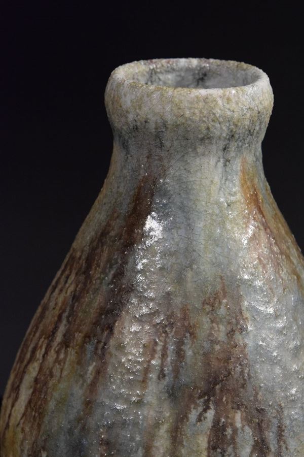 Vaso in grés con colature policrome. Realizzato nell'anno della prima personale a Bologna dell'artista.