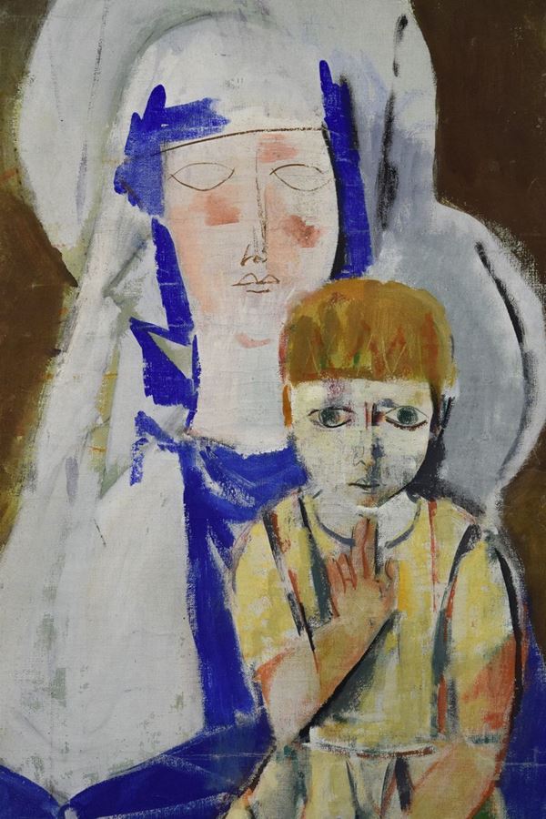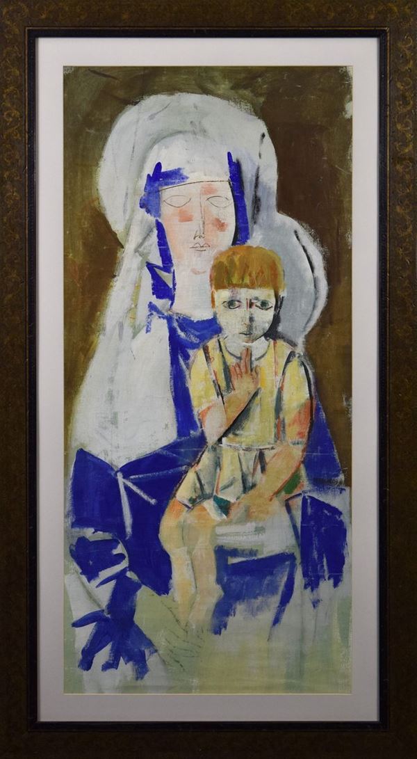 Tempera su tela di studio di Madonna con Bambino in trono per mosaico eseguito per la Cattedrale di Manila.