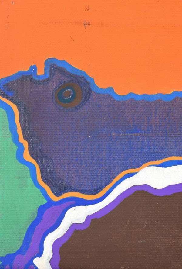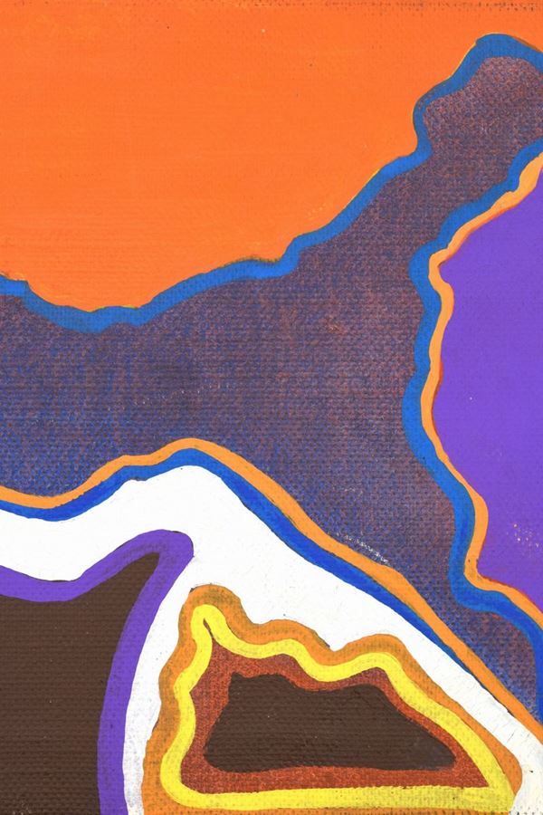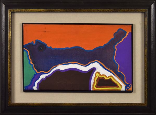 Olio su tela di colori che compongo forme astratte evidenziate da righe.