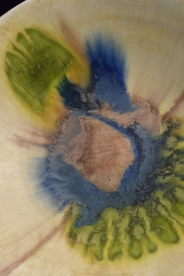 Ciotola in ceramica policroma a motivi informali al centro.