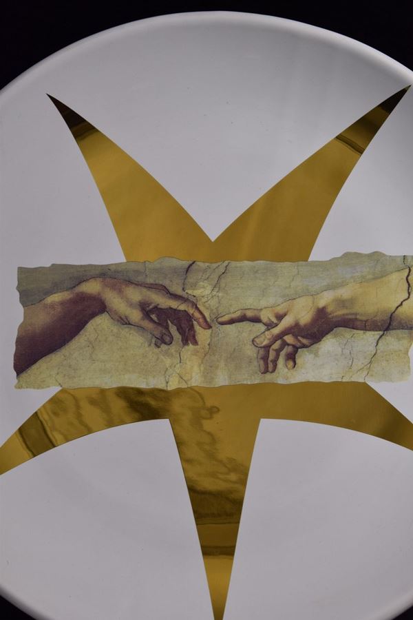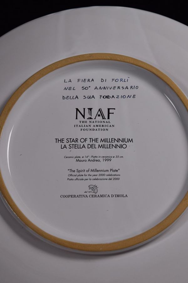 Piatto in ceramica policroma per la celebrazione dell'anno 2000 eseguito per "The National Italian American Foundation".