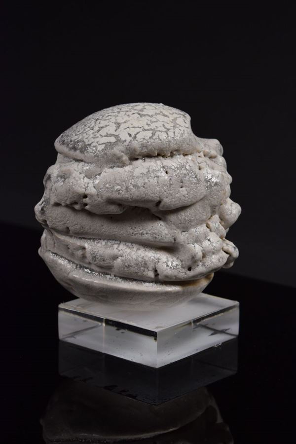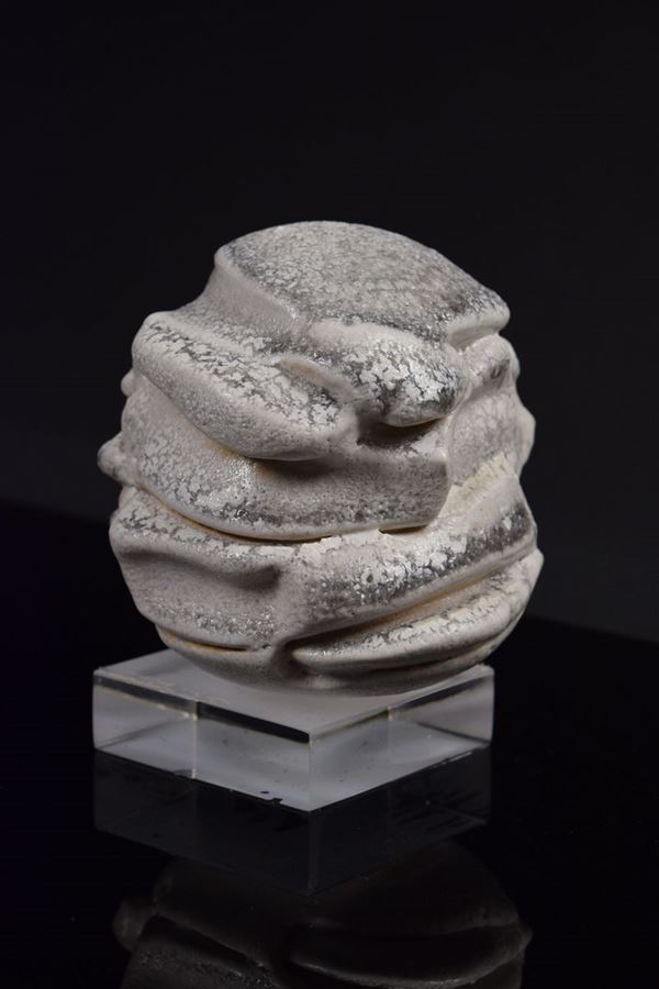 Sfera in grès "Bianco Zauli". Con base in plexiglass.
