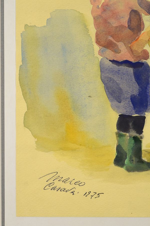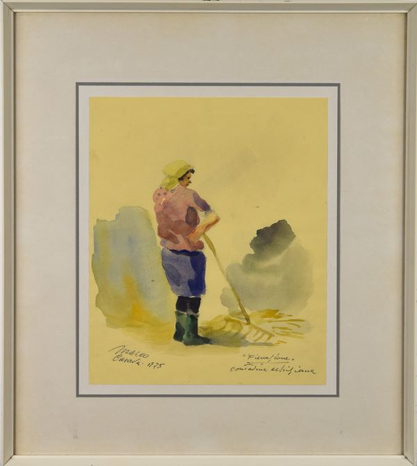 Acquerello su carta con figura di contadina.