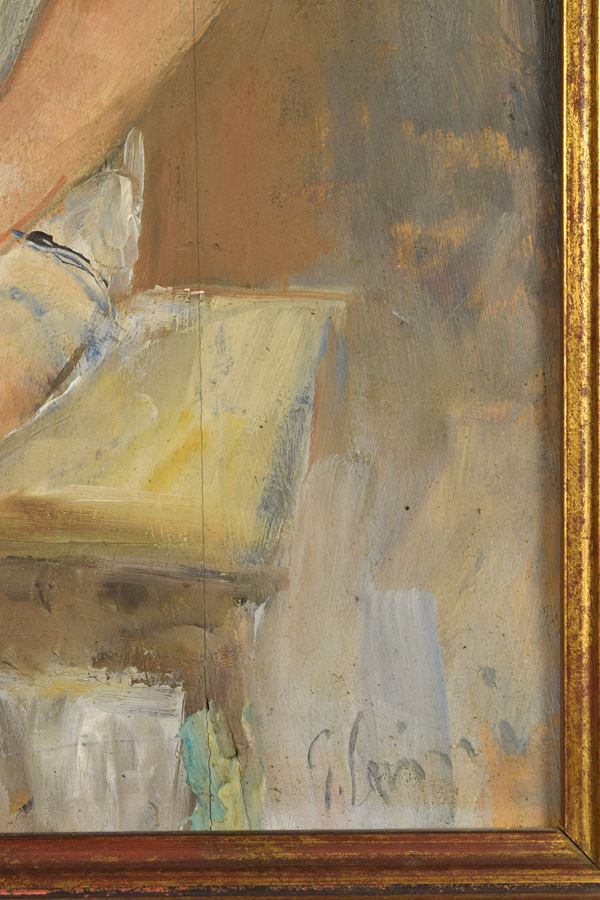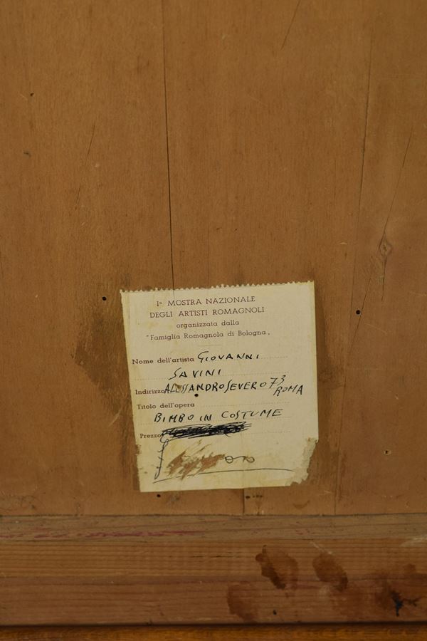 Nel retro reca etichetta della prima Mostra Nazionale degli Artisti Romagnoli del 1957, a Bologna nel Salone del Podestà.