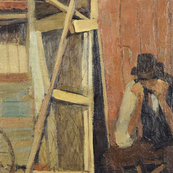 Presenta nel retro etichetta di esposizione alla "Mostra di cinquanta maestri del prossimo trentennio" tenutasi a prato nell'ottobre del 1955.