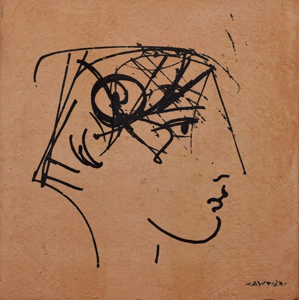 Lastra in cotto eseguita dal maestro ceramista Goffredo Gaeta su disegno originale di Giuseppe Tampieri. Prodotta in 75 esemplari in occasione del novantesimo compleanno del maestro pittore. Sul retro reca etichetta con numero di esemplare n.48 e firma del maestro Giuseppe Tampieri.