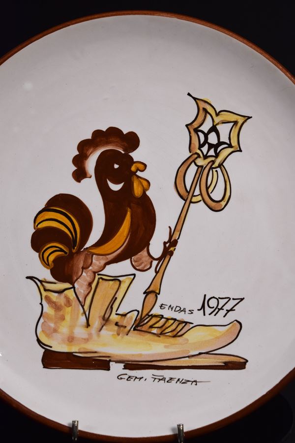Piatto publicitario dell'Ends (Ente Nazionale di promozione sportiva) in ceramica policroma.