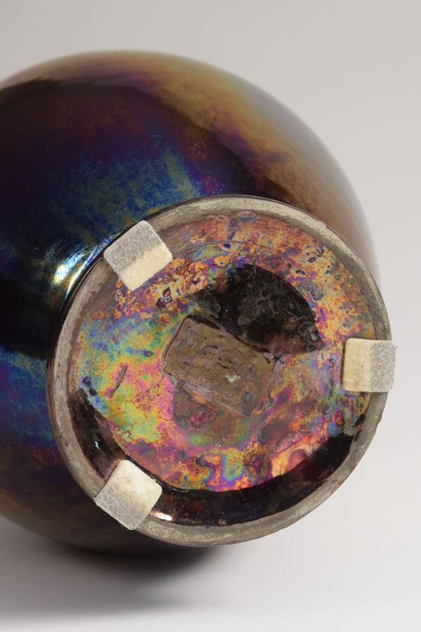 Grande vaso in ceramica riflessata effetto rame tipico del Maestro.