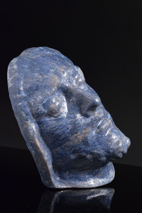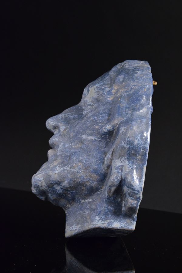 Ceramica policroma con smalti madreperlacei raffigurante volto di Cristo.