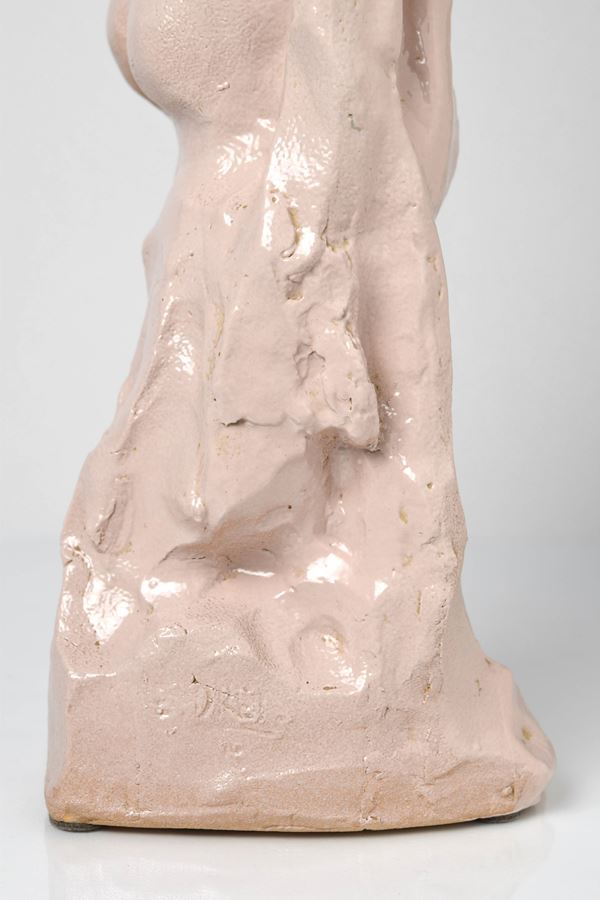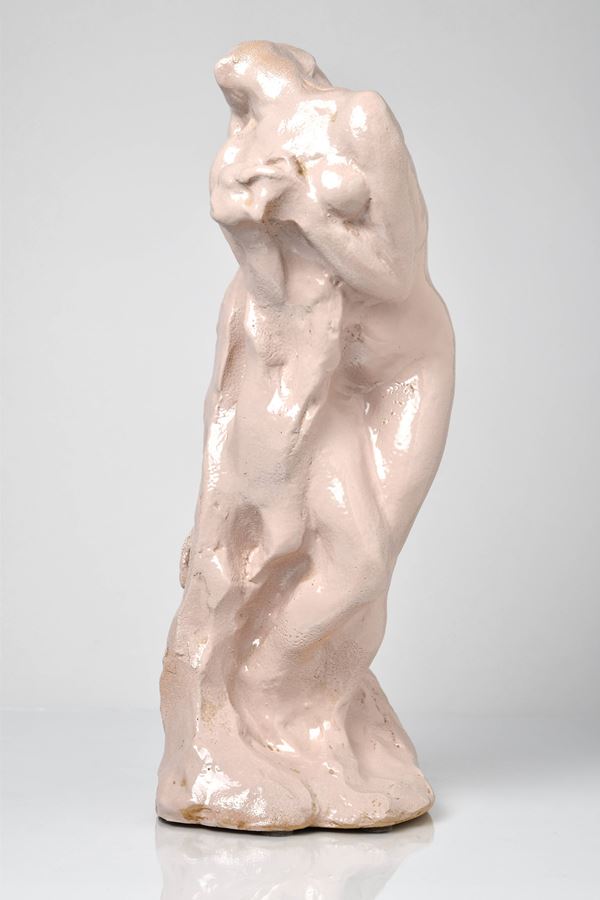 Scultura in ceramica monocroma raffigurante nudo di donna.