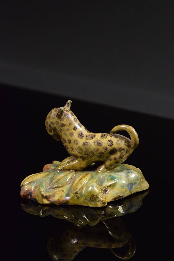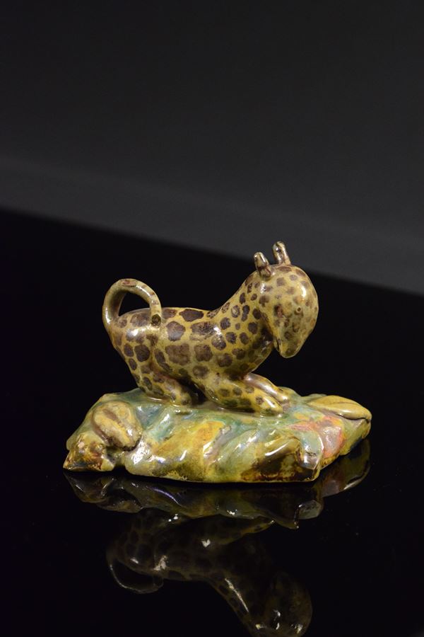 Animaletto fantastico in ceramica policroma modellato a mano facente parte della composizione de "Il Mito di Orfeo".