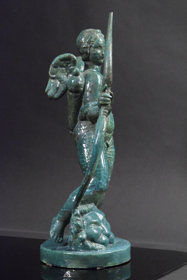 Cupido in ceramica monocroma. Da un modello di Carlo Lorenzetti.