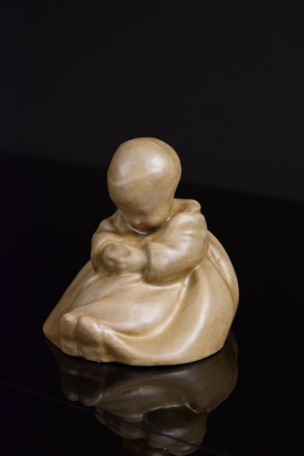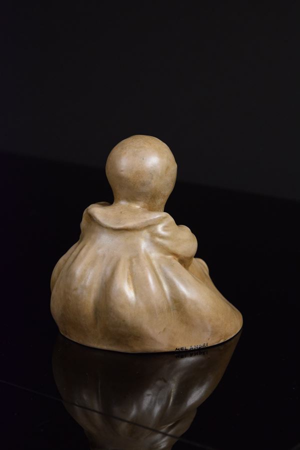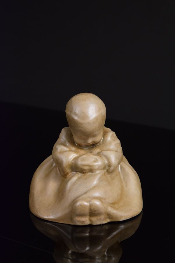 Maria Teresa seduta con pomo in ceramica monocroma a smalto mat. Da un modello di Domenico Baccarini.