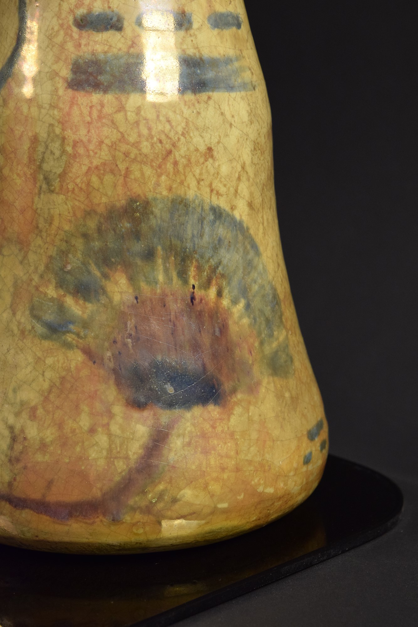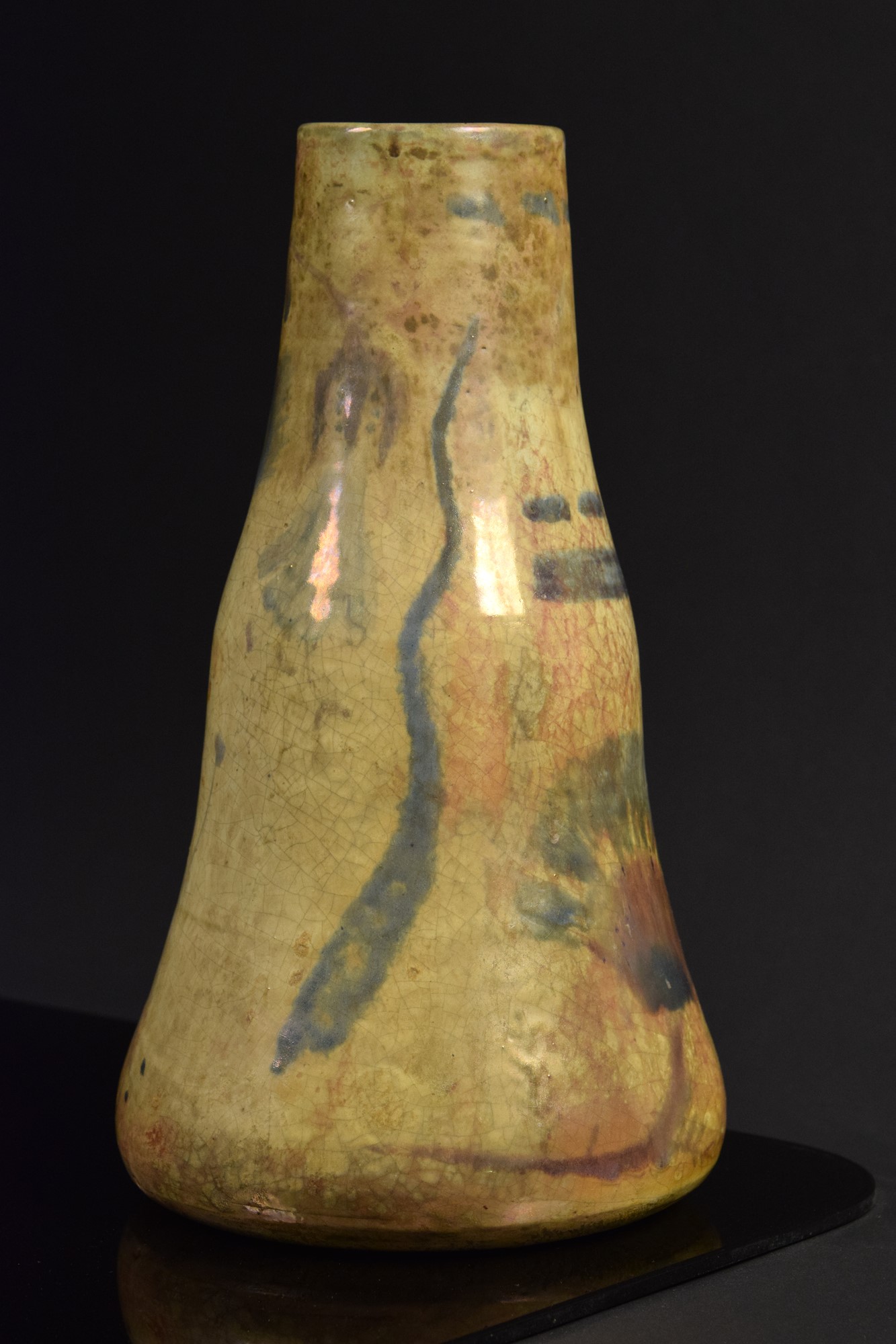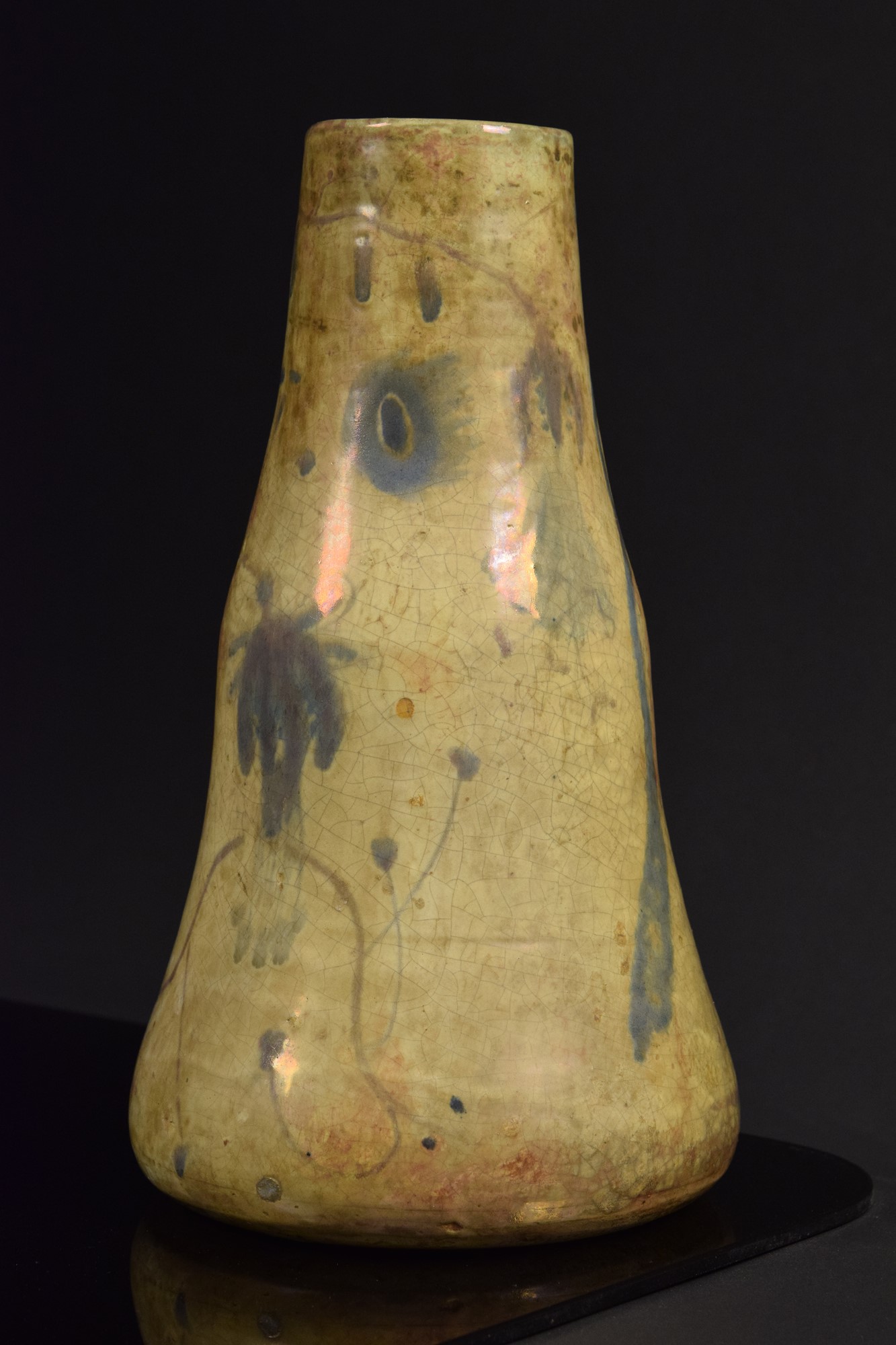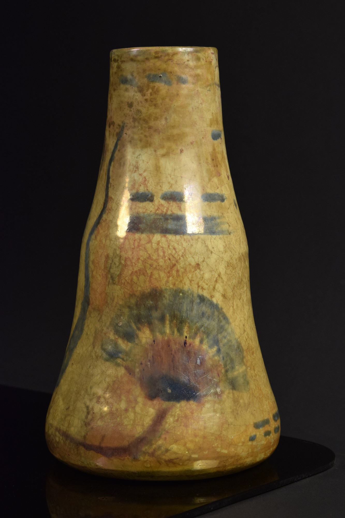 Vaso in ceramica policroma riflessata a lustro dipinto a motivi informali.