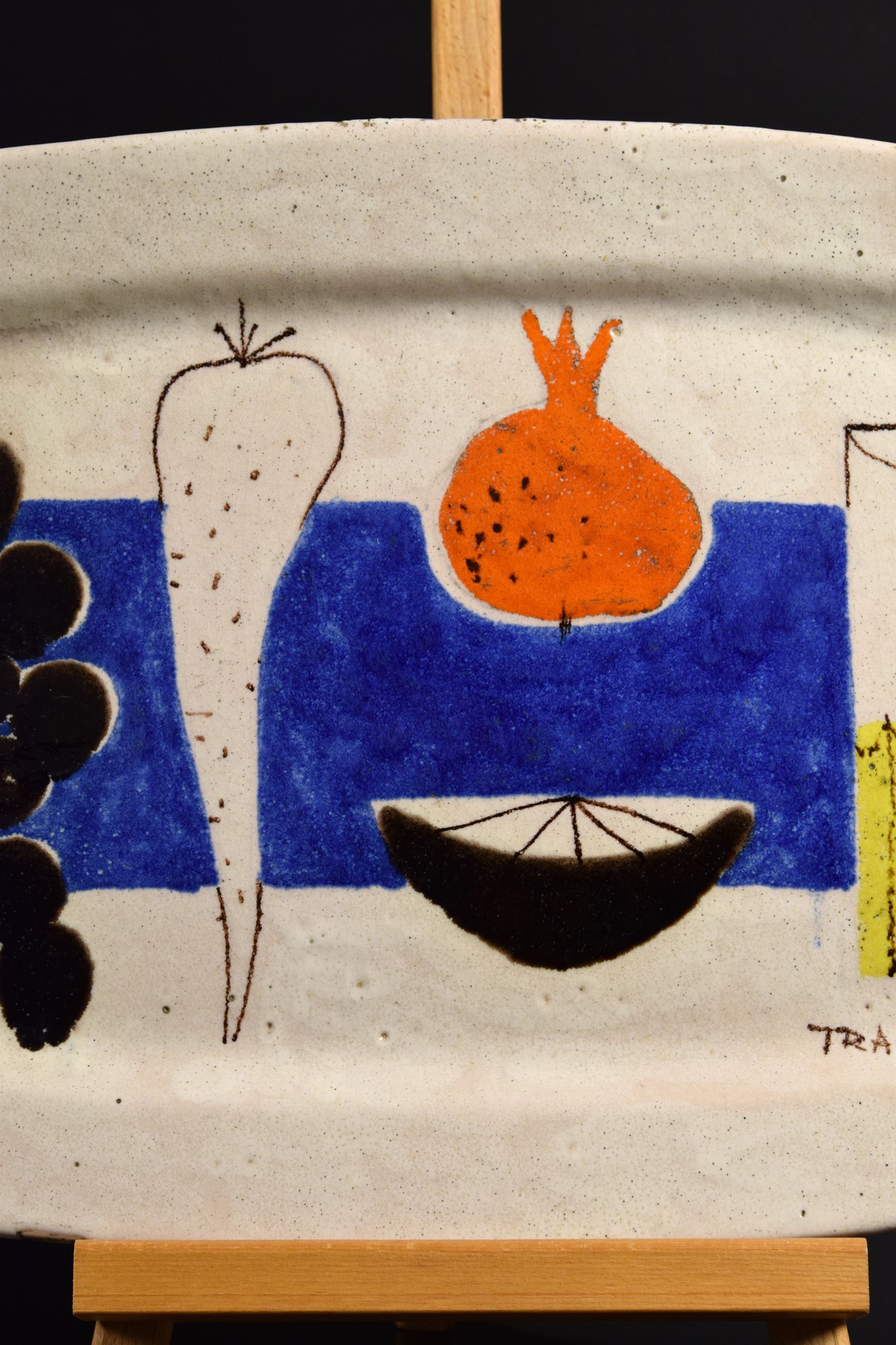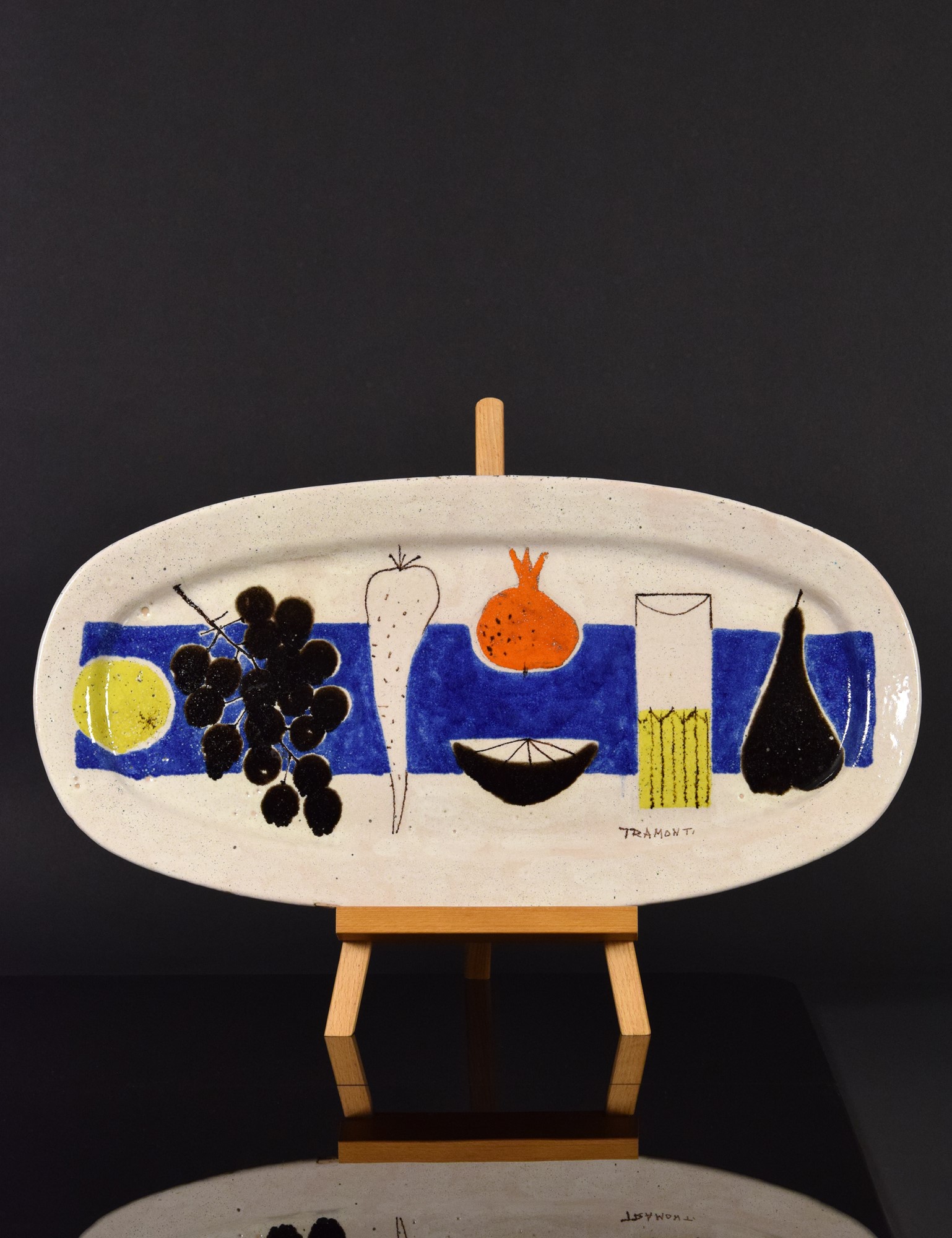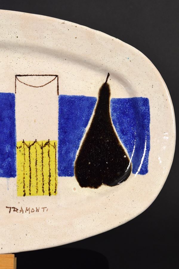 Vassoio in ceramica policroma con natura morta policroma.