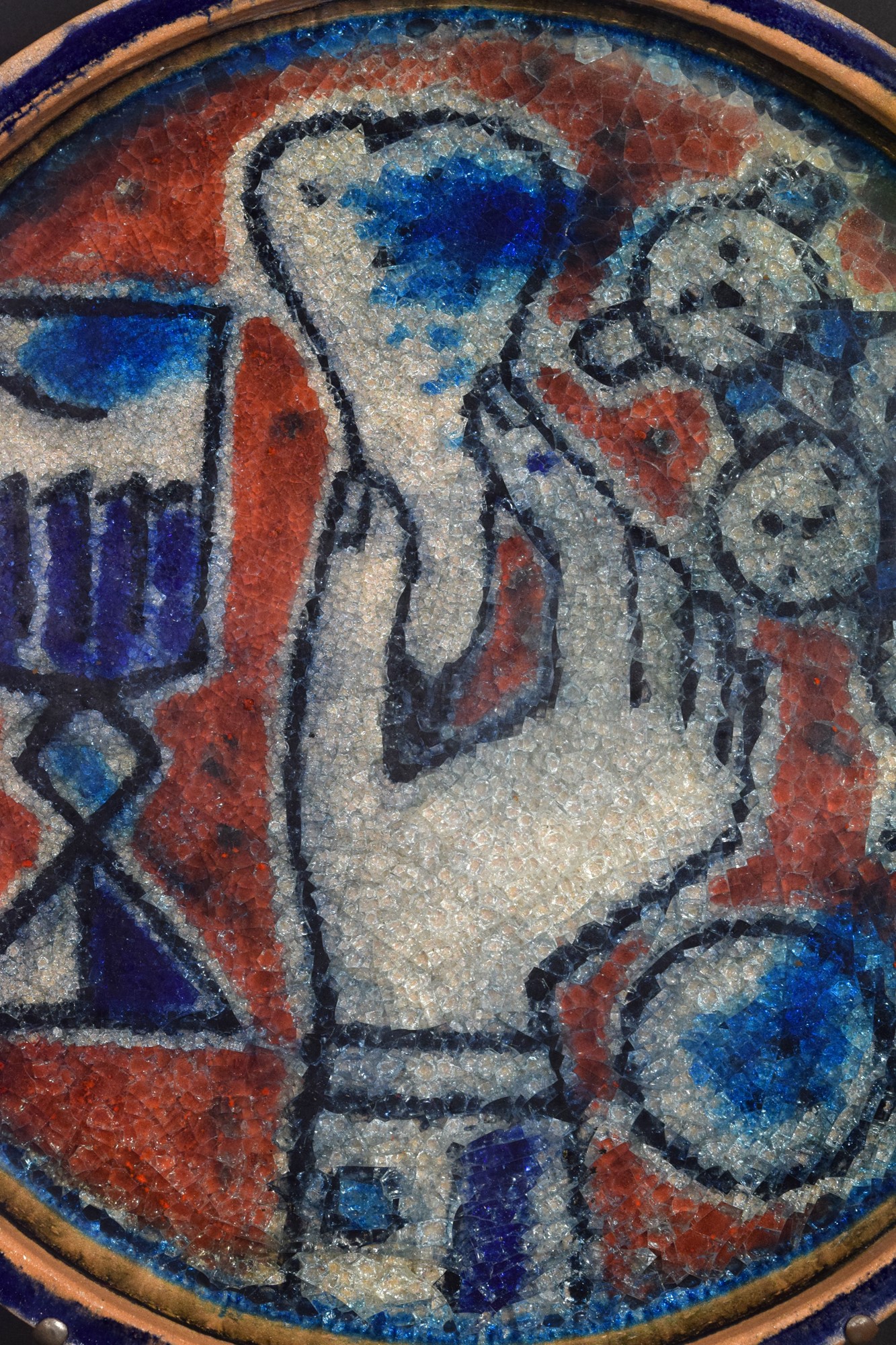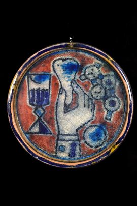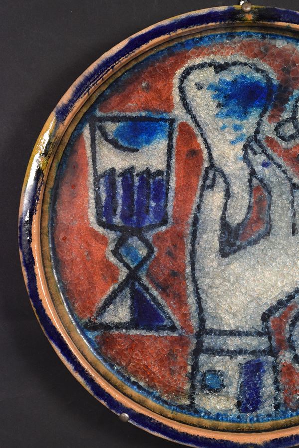 Piatto con cristallina a grosso spessore di natura morta con mano.