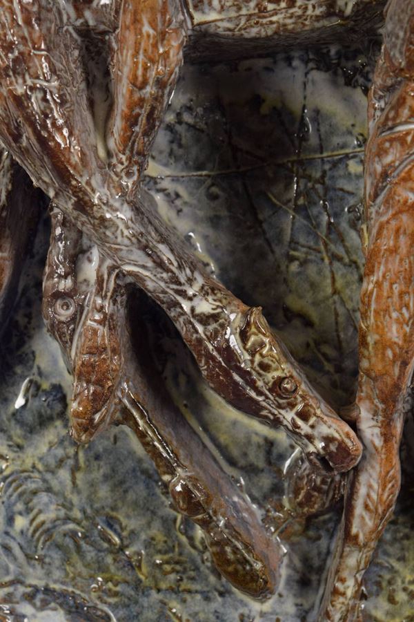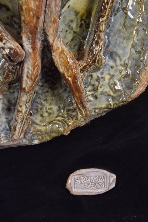 Firmato in basso a destra con targhetta in ceramica.