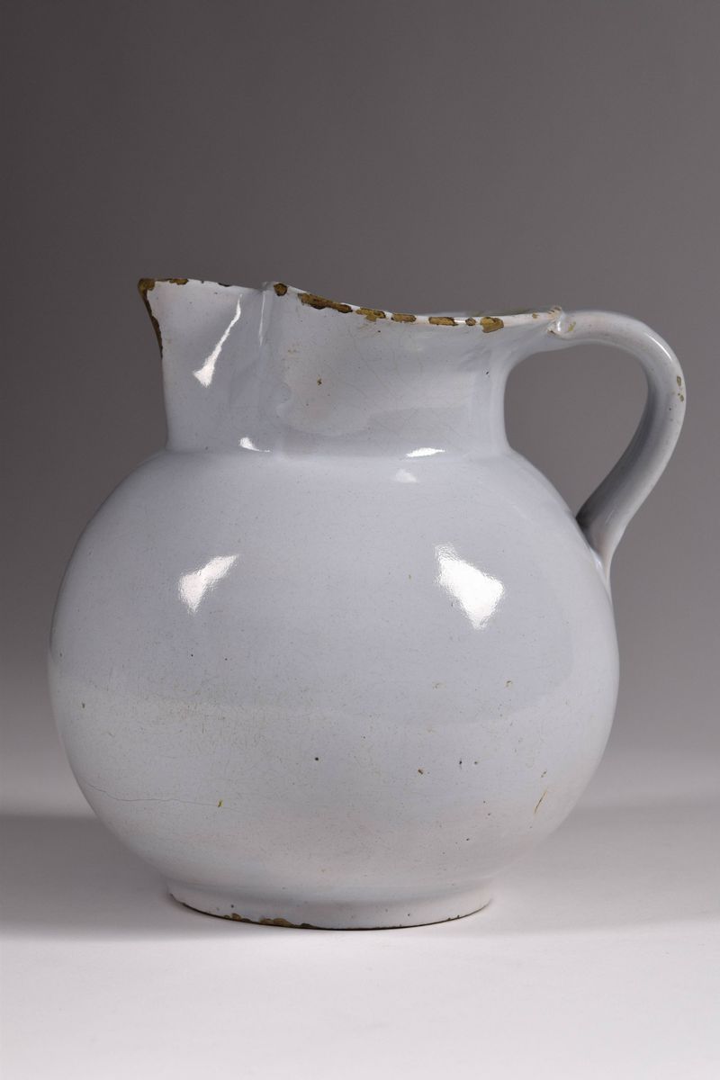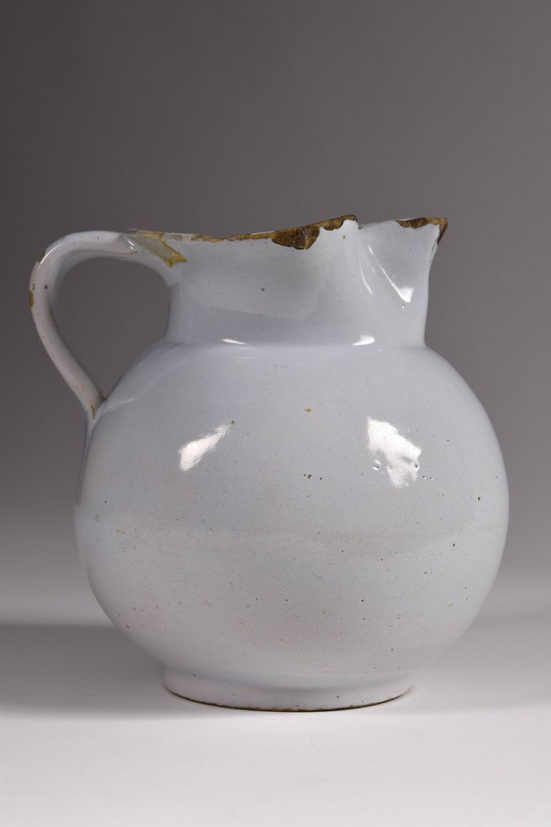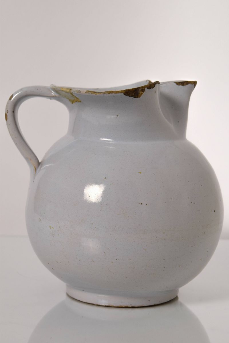 Boccale in maiolica monocroma a bocca trilobata.