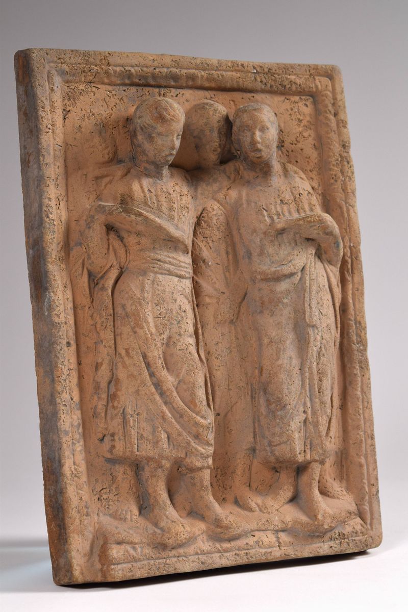Formella in terracotta con figure