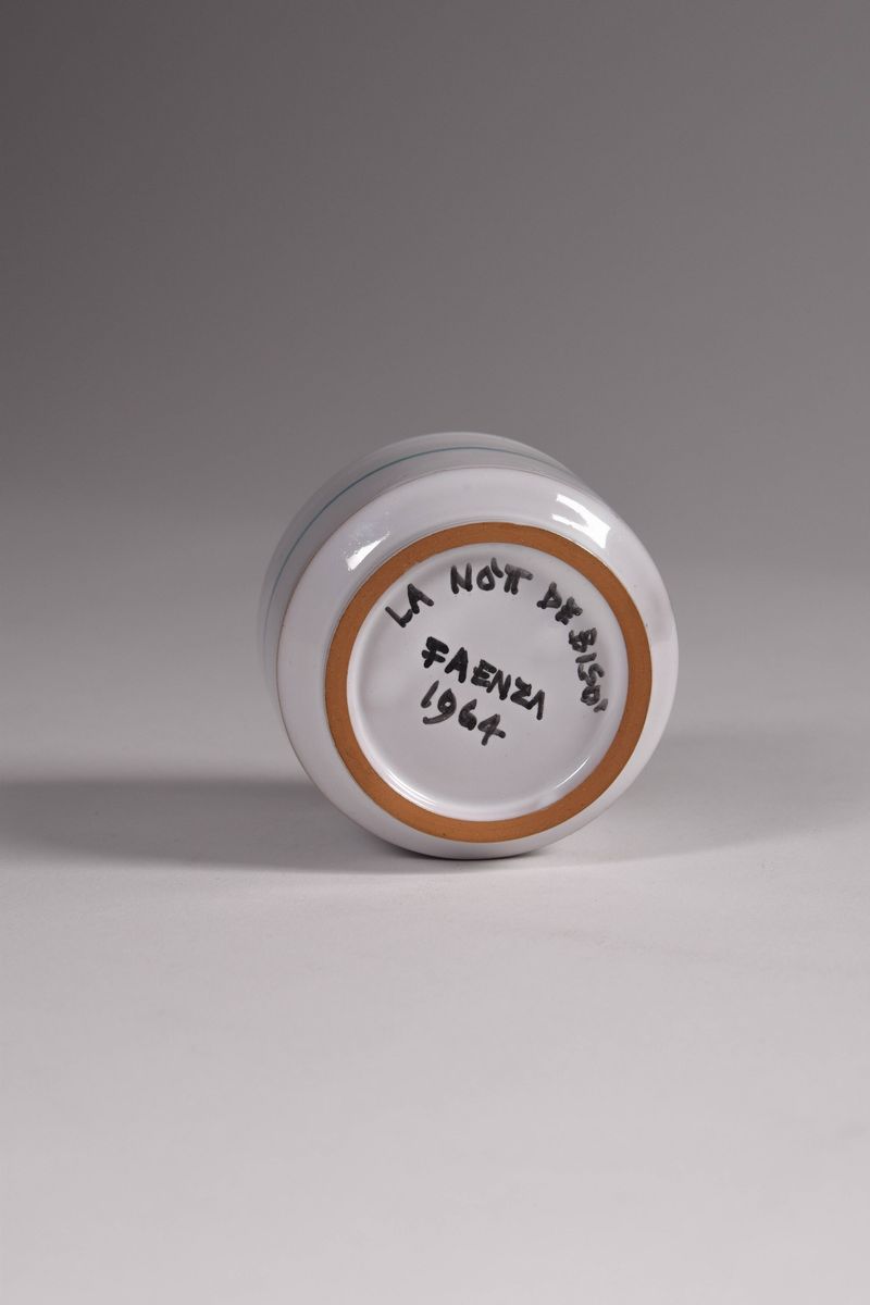 Serie completa dei gotti in ceramica policroma dipinta della prima edizione del Palio del Niballo di Faenza, eseguita da Goffredo Gaeta.
