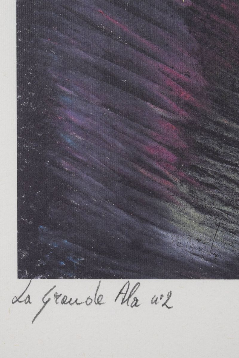 Litografia a colori. Titolo in basso a sinistra "La grande ala n.2".