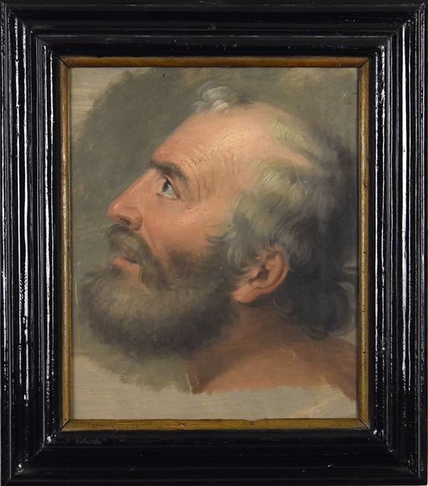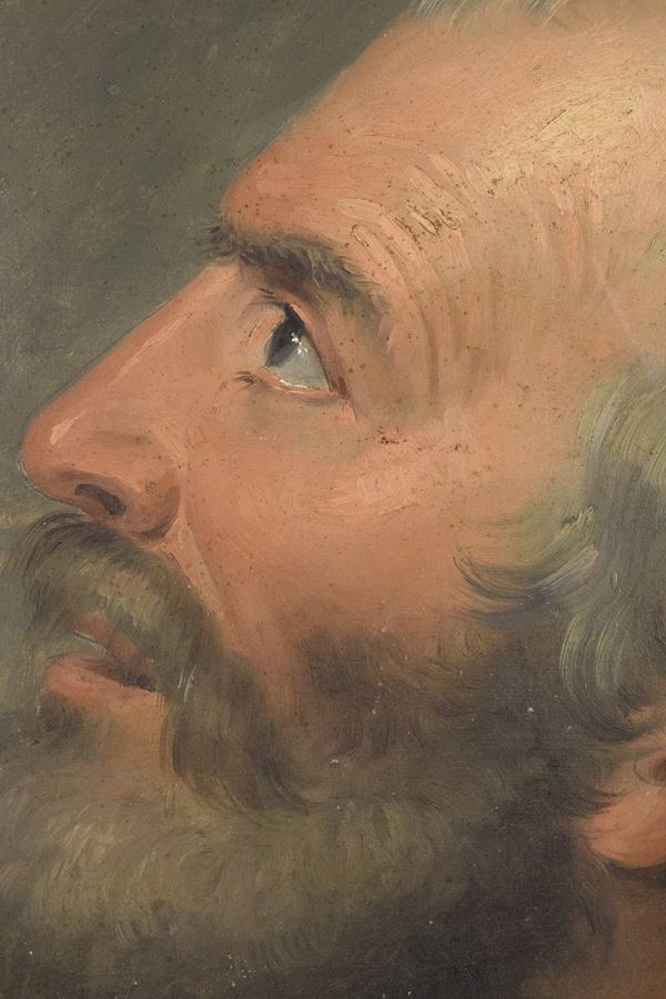 Tempera su cartone di profilo di San Pietro. Entro cornice coeva.