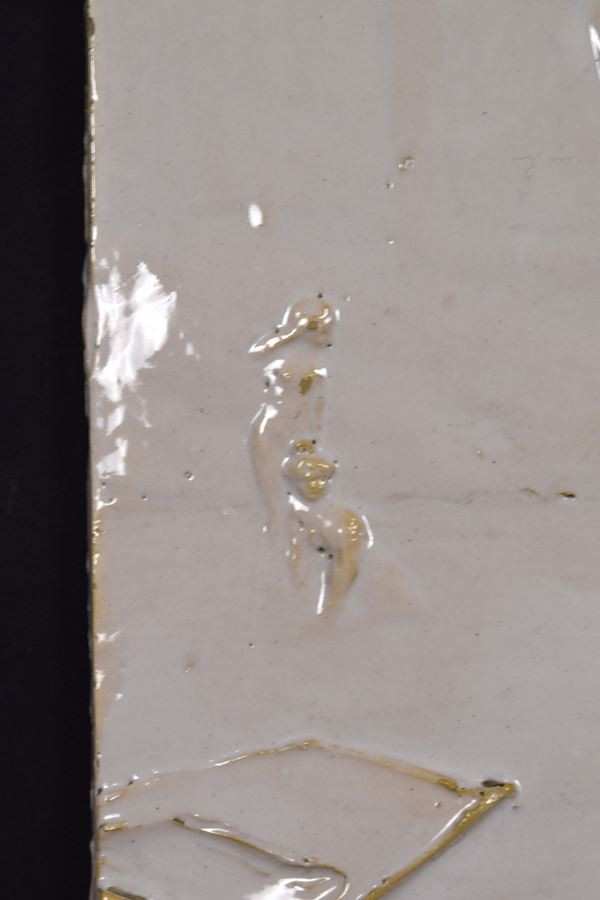 Piastra in ceramica smaltata raffigurante nudo femminile. Manifattura faentina di inizio secolo.