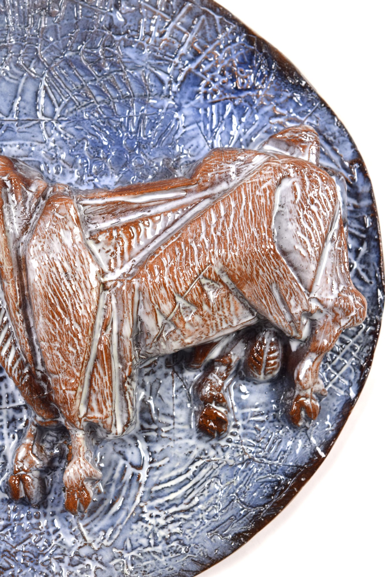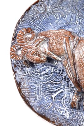 Pannello tondo in ceramica policroma ad altorilievo.