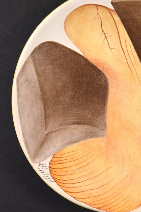 Piatto in ceramica policroma dipinta mano.