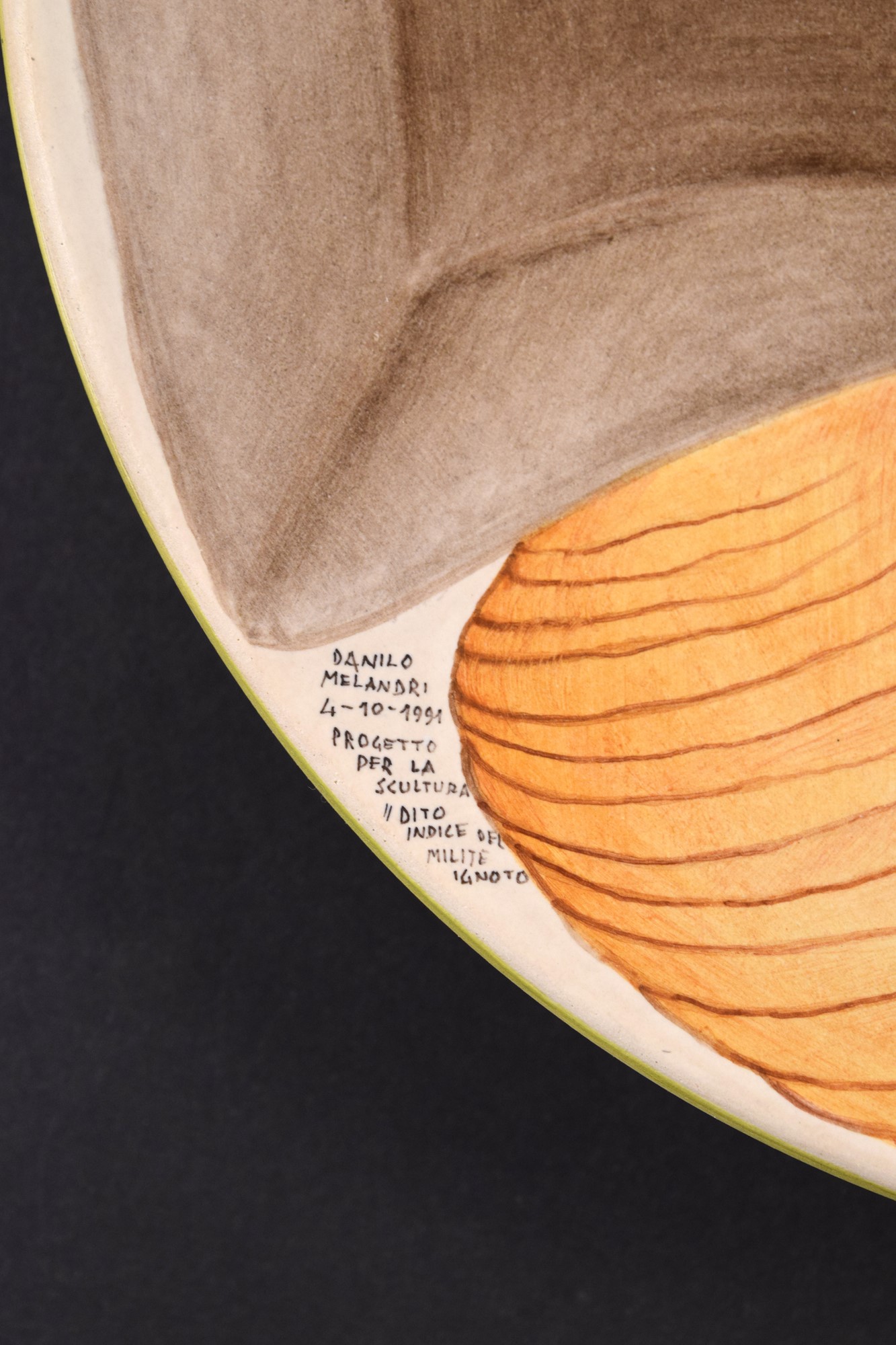 Firmato e intitolato nel fronte "Danilo Melandri 4-10-1991 Progetto per la scultura "Dito indice del Milite Ignoto".