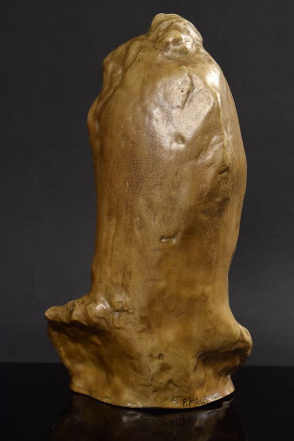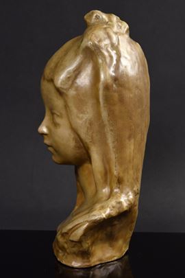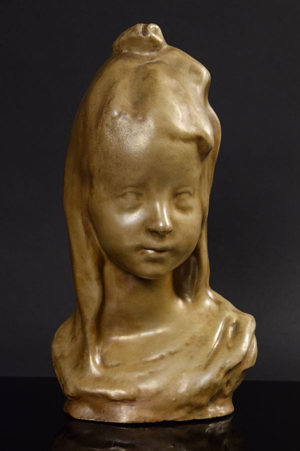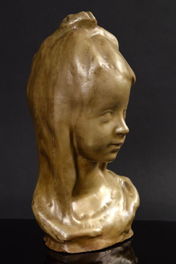 Busto di ragazza in ceramica monocroma a smalto mat.