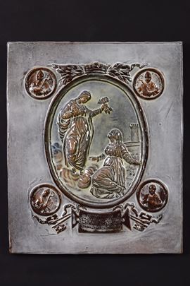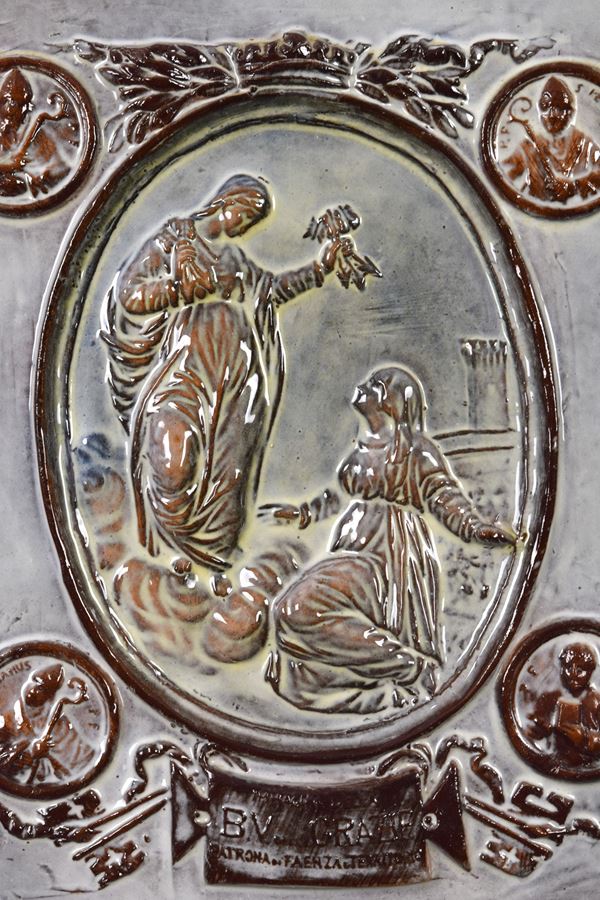 Piastra in ceramica policroma di Madonna delle Grazie di Faenza.