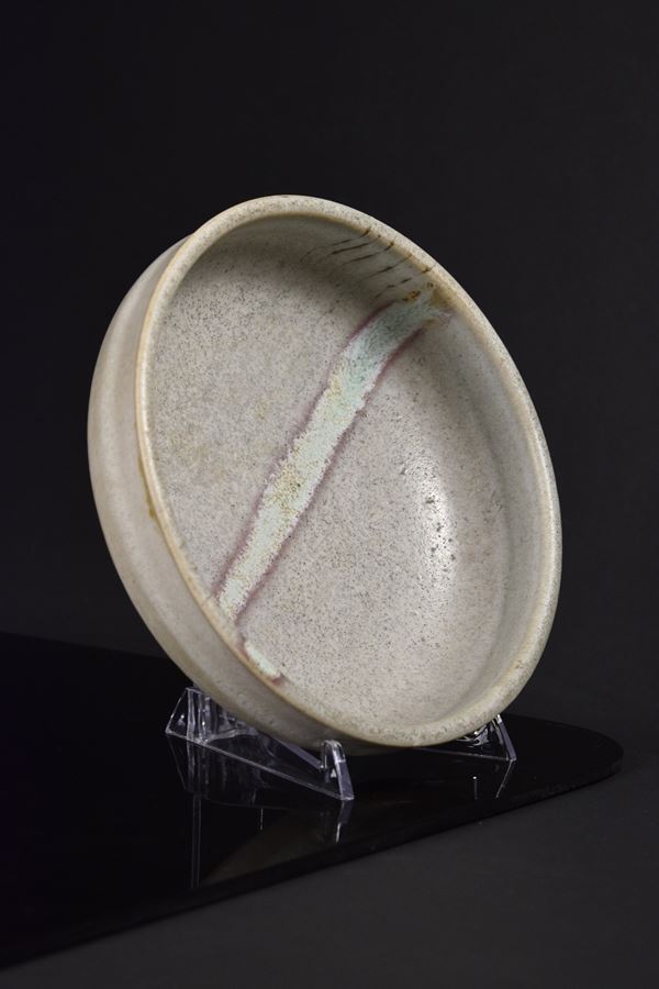 Ciotola a bordi altti in grès "Bianco Zauli" con intervento al centro.