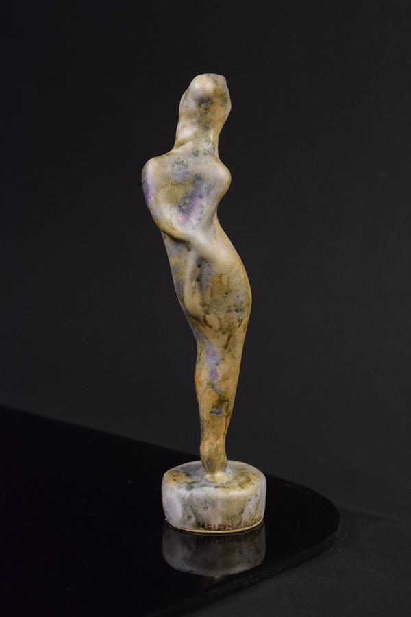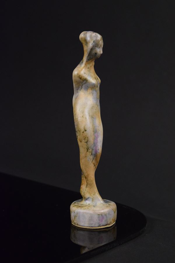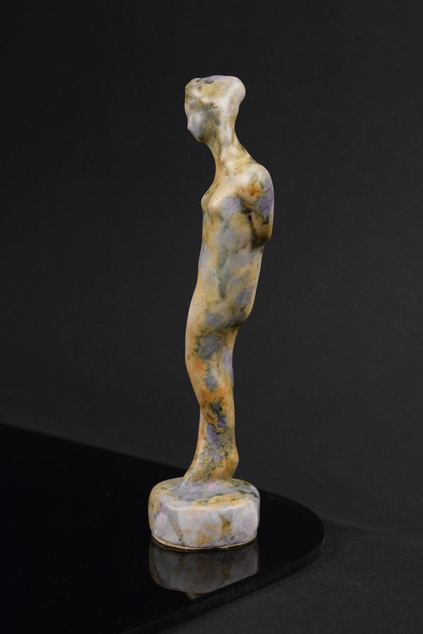 Damina in ceramica policroma a smalto mat. Da un modello di Francesco Nonni