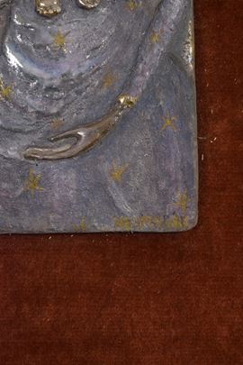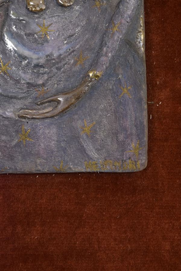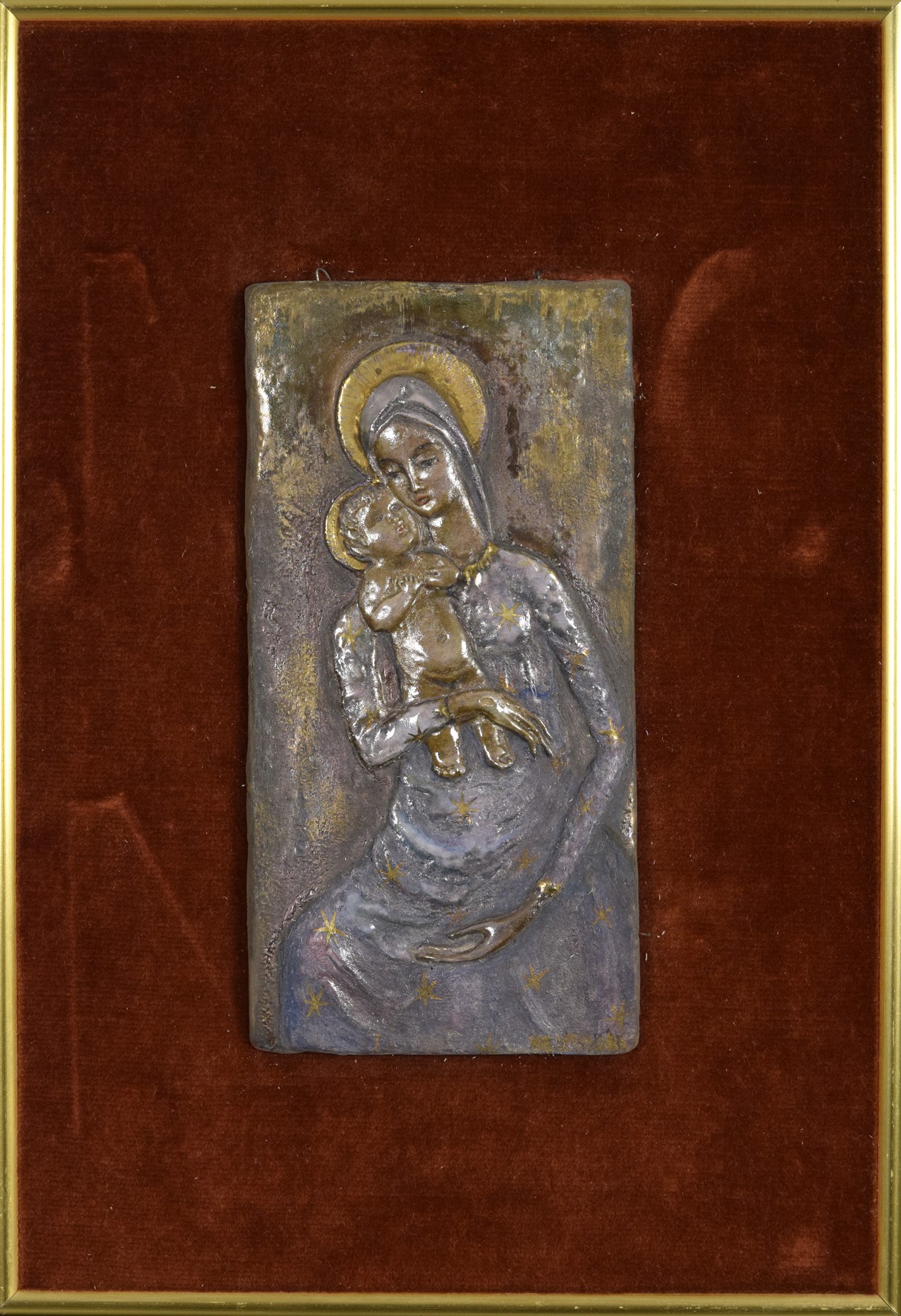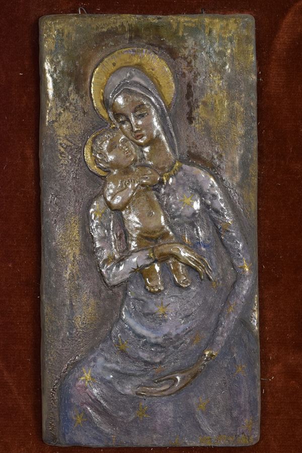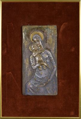 Targa di Madonna con Bambino. Montato su pannello coevo.