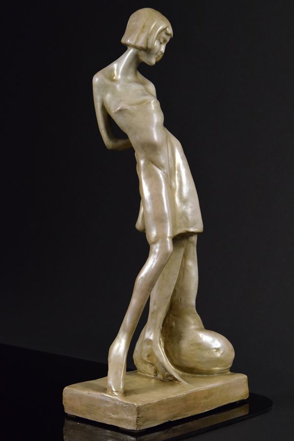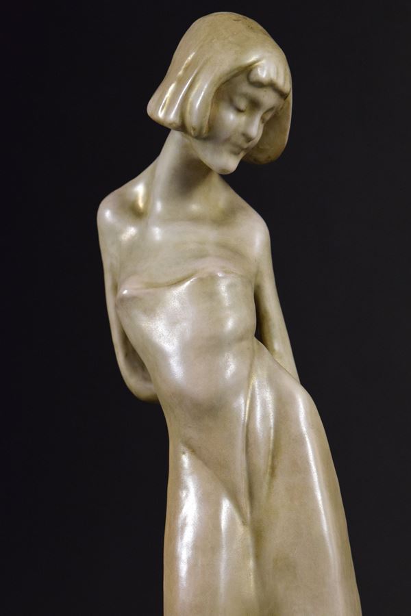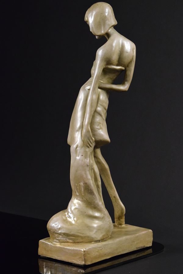 Ragazza in ceramica monocroma. Da un modello di Enrico Mazzolani.