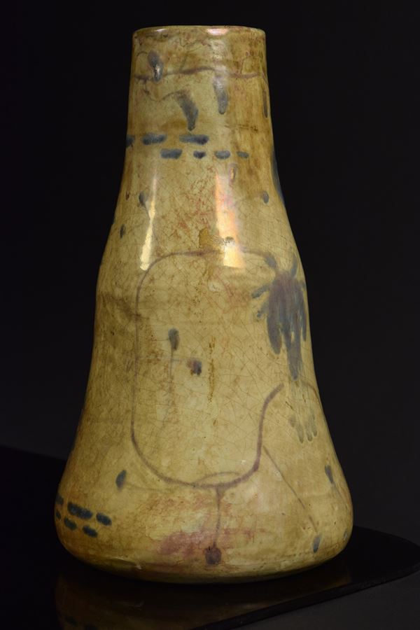 Vaso in ceramica policroma riflessata a lustro dipinto a motivi informali.