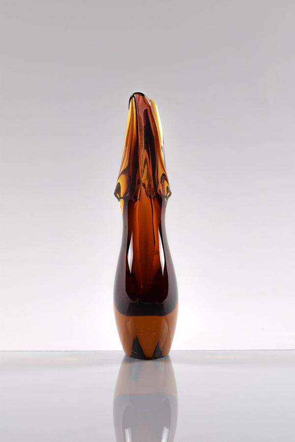 Vaso rondine in vetro sommerso di Murano color ambra.